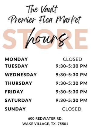We are located in Wake Village, a suburb of Texarkana. We have 40 vendors that are bringing new items in every week! You will find vintage and retro collectibles, antiques, kitchenware, home decor, jewelry, albums, books, and much more!